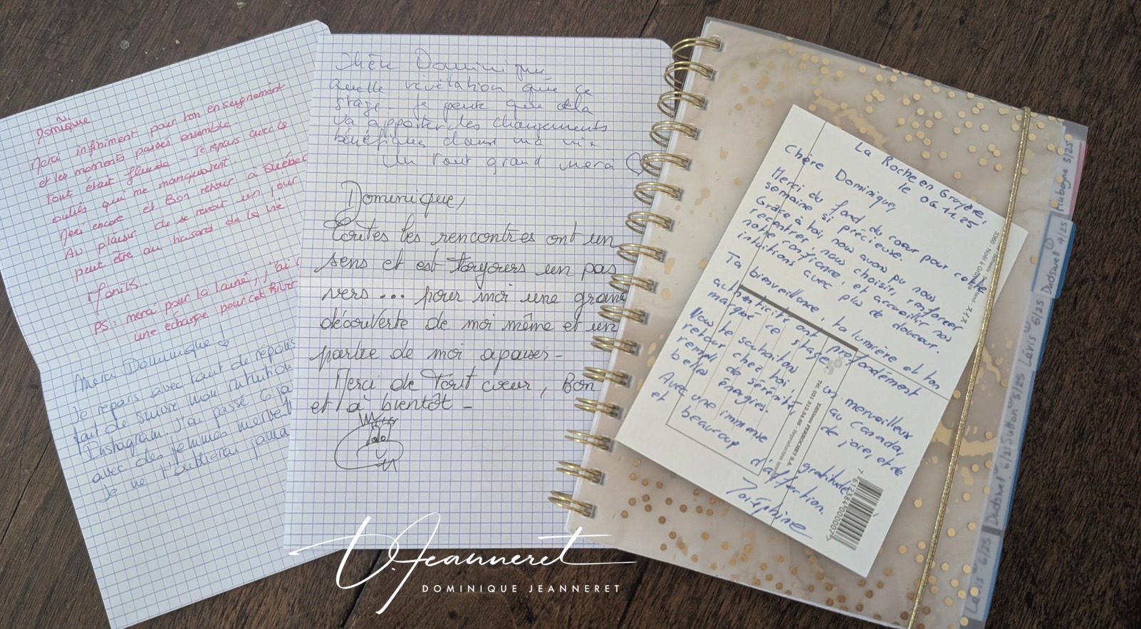 25 janvier 2026 En faisant du ménage dans mes affaires aujourd'hui, j'ai ouvert le cahier qui me suit partout dans tous mes stages, celui où j'écris, une fois les exercices faits, ce que j'ai proposé comme activités. J'ai une liste, un fil conducteur, mais les processus ne sont jamais lesLire la suite >>>