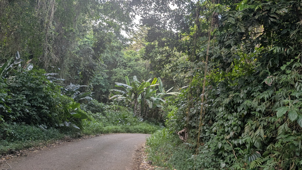 Sur la route, qui monte, descend et tourne dans de petits virages escarpés parfois presque à 180°, on découvre la faune luxuriante de cette belle île. On se retrouve dans la jungle ☺️