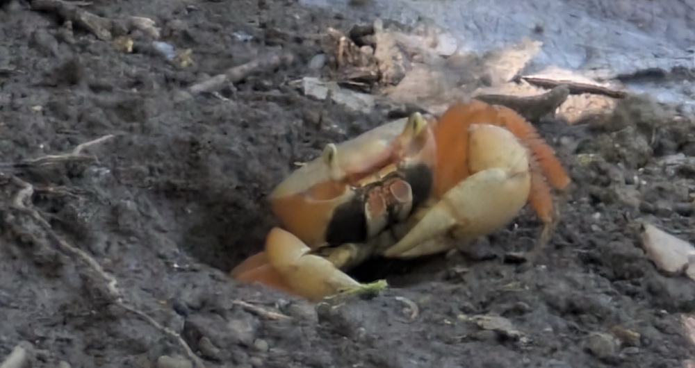 👉 En Martinique, c’est presque sûrement le crabe soldat, un bernard-l’ermite terrestre très commun.