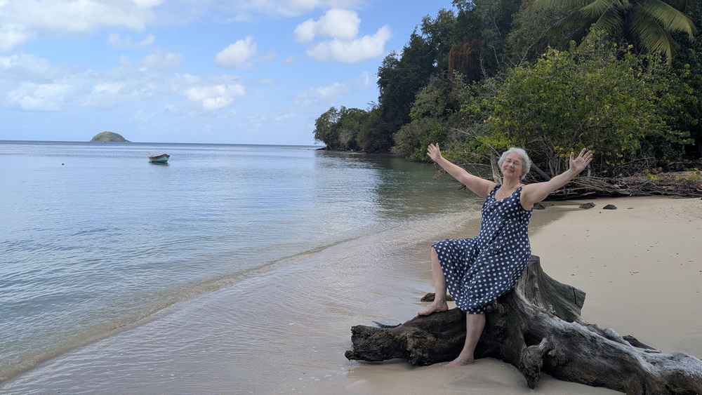 Nous sommes ensuite allées à Tartane, un village pas loin de Trinité avec une longue plage de beau sable clair. Quel bonheur d’être au chaud avec une petite brise douce de la mer, l’eau agréable et les gens charmants 🥰